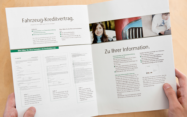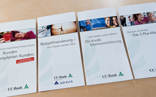 Produktkommunikation für zahlreiche Bankprodukte, Entwicklung von Broschüren, Finanzierungsratgebern, Flyern, etc.